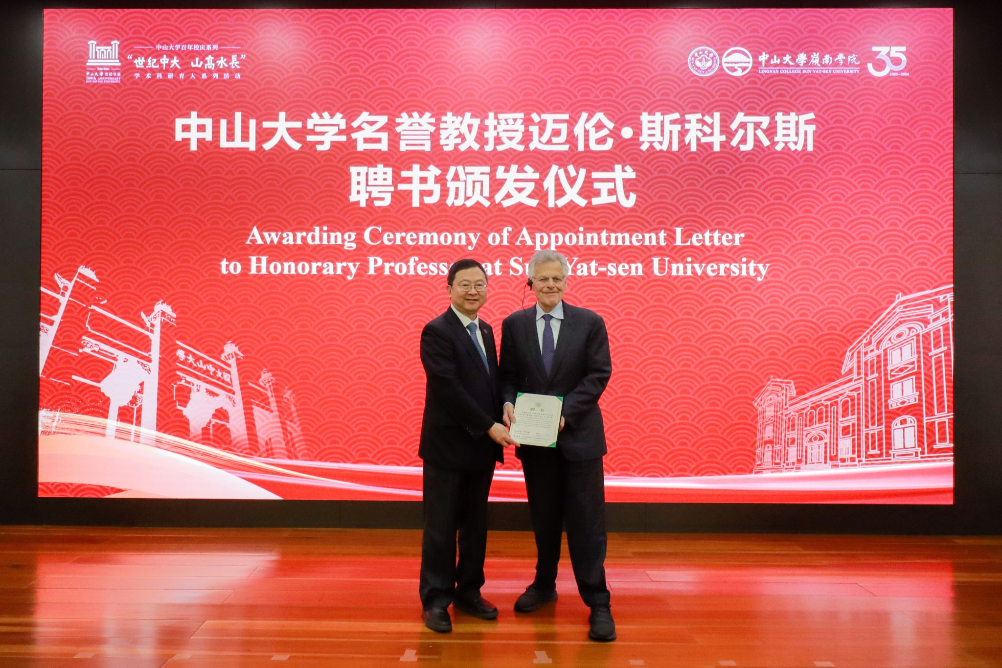 中大新闻网讯(通讯员刘俊鹏、方东妮)7月4日上午,bat365在线中国登录入口在广州校区南校园怀士堂举行名誉教授证书颁发仪式,校长高松院士为1997年诺贝尔经济学奖获得者、知名经济学家迈伦·斯科尔斯教授(Myron S. Scholes)正式颁发bat365在线中国登录入口名誉教授证书。斯科尔斯教授为在场百余名师生校友带来题为“不确定性、人工智能与脱碳”(Uncertainty, AI and Decarbonization)的讲座。副校长郑跃教授出席活动并致辞,经济与管理学部主任、岭南学院...