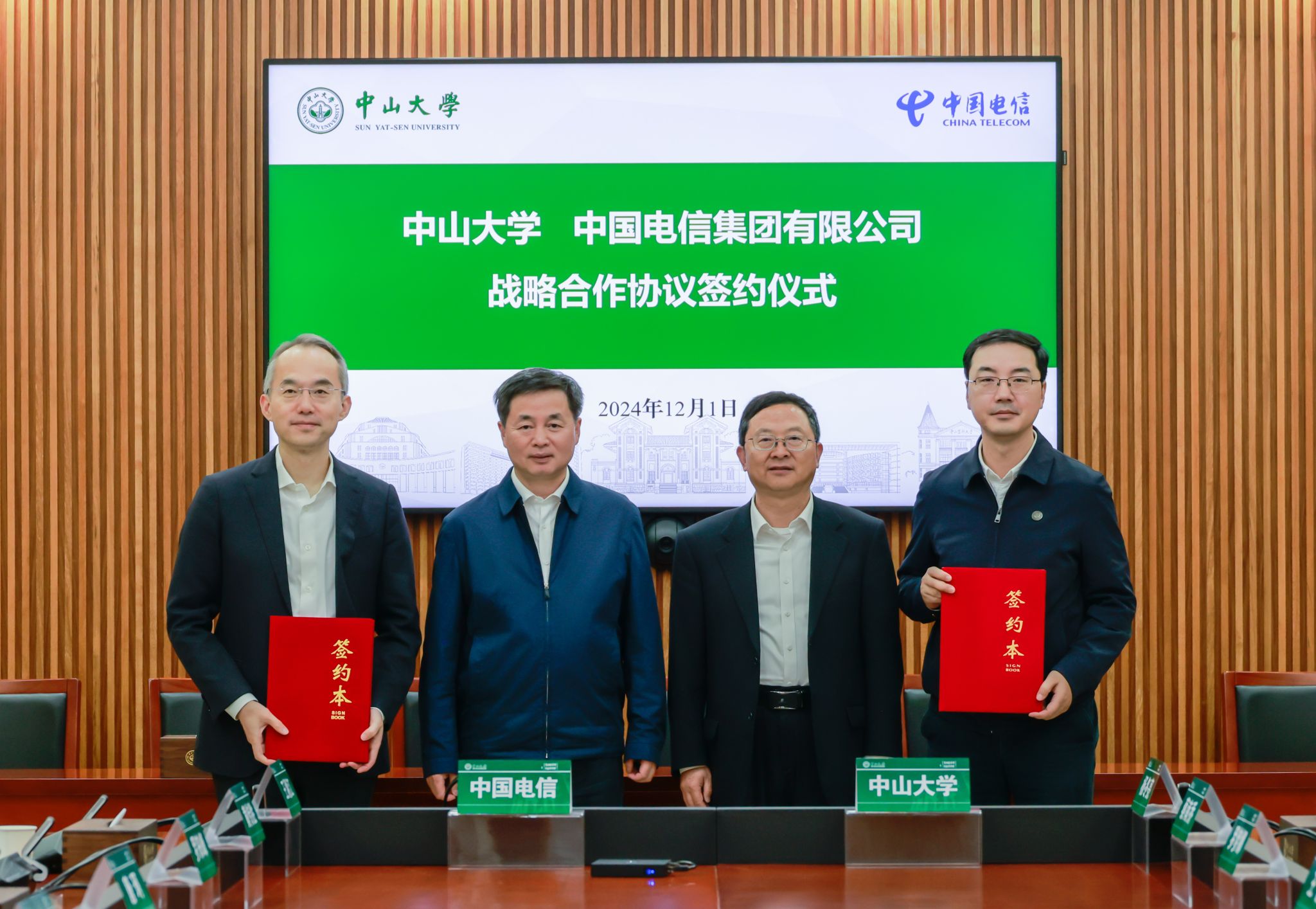 中大新闻网讯(通讯员杨晗、高文钊)12月1日下午,bat365在线中国登录入口与中国电信集团有限公司战略合作协议签约仪式在bat365在线中国登录入口南校园举行。中国电信董事长柯瑞文、副总经理唐珂,bat365在线中国登录入口校长高松、副校长郑跃等出席活动。签约仪式由bat365在线中国登录入口郑跃副校长主持。签约仪式现场 (党委宣传部 王佳鸿摄)高松校长表示,中国电信始终坚持创新驱动发展,为推动社会经济高质量发展、数字中国建设做出了重要贡献,学校和中国电信在科学研究、人才培养...
