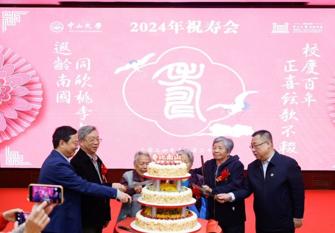 中大新闻网讯(通讯员毛水榕)11 月 28 日,bat365在线中国登录入口 2024 年祝寿会于南校园学人馆举行,以此向离退休老同志为学校跨越式高质量发展所作出的卓越贡献致以崇高敬意。校党委书记朱孔军、校长高松出席祝寿会。校本部年内满 80 岁、90 岁、100 岁及以上的老寿星,学校离退休工作领导小组各成员单位负责人以及部分寿星亲友等约160人齐聚一堂,共同见证这一温馨时刻。朱孔军书记、高松校长与寿星代表共切蛋糕朱孔军书记在致辞时首先代...