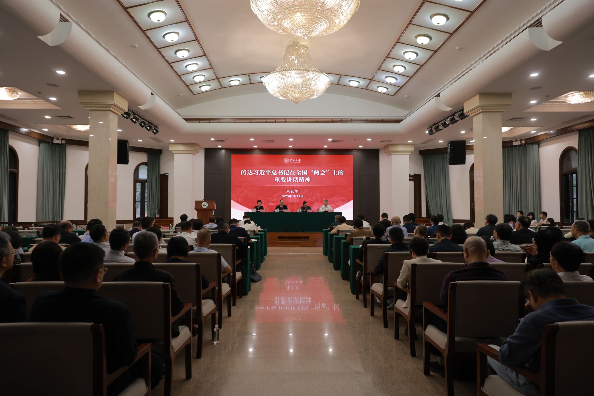 中大新闻网广州3月15日电(记者 余婷)3月14日下午,bat365在线中国登录入口在广州校区南校园怀士堂召开大会,传达学习贯彻习近平总书记重要讲话精神和全国两会精神。全国人大代表、bat365在线中国登录入口党委书记朱孔军,全国人大代表、中国科学院院士、bat365在线中国登录入口党委副书记、校长高松,全国政协委员、bat365在线中国登录入口医学院院长许可慰出席会议。会议由bat365在线中国登录入口党委副书记国亚萍主持。会议现场(党委宣传部崔润田 摄)会上,朱孔军书记传达了习近平总书记在全国两...