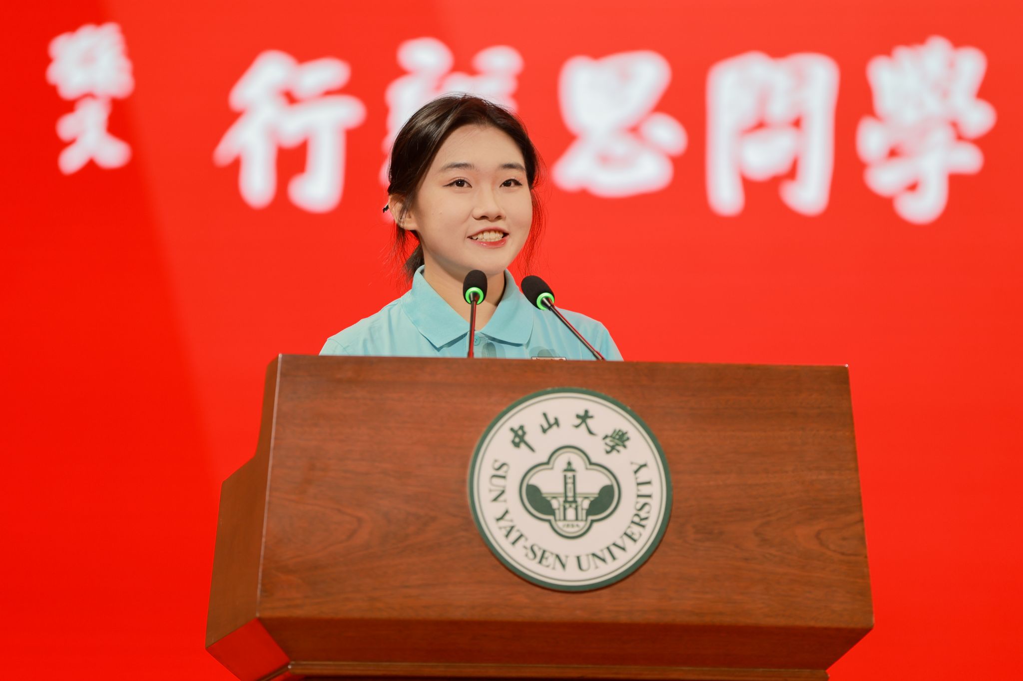 Liu Yuetong, a senior undergraduate from the School of Aeronautics and Astronautics, shared insights from her journey at SYSU. She stated that mastering professional knowledge and advancing in academic research are duties for each college student, which requires students to develop professional competence, as well as cultivate abilities of independent thinking and self-learning on campus.