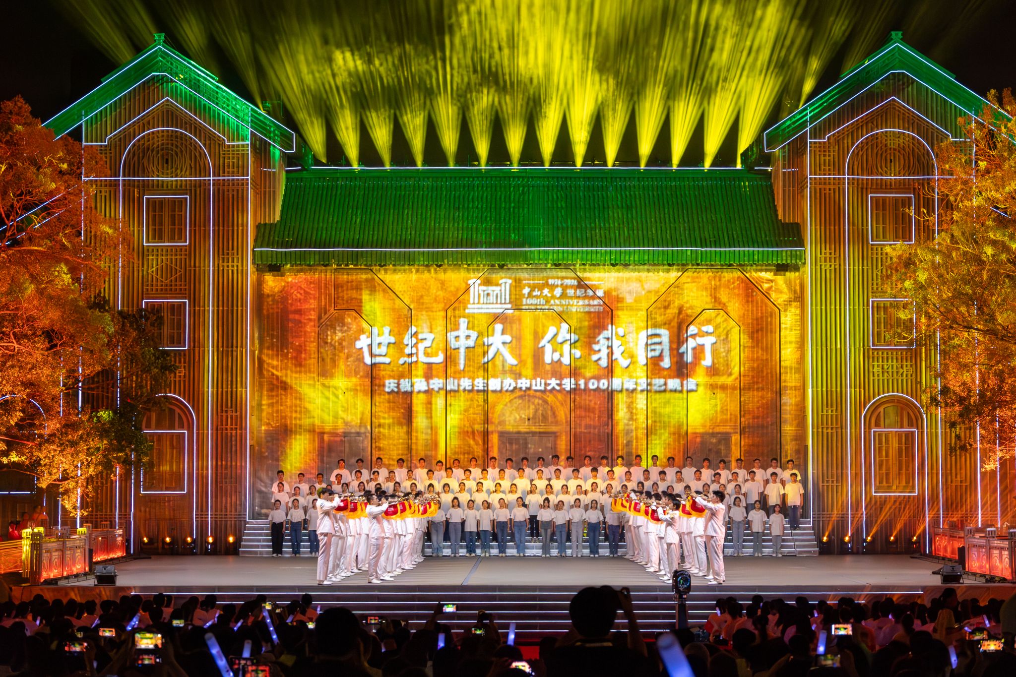 An evening gala celebrating the centennial of Sun Yat-sen University (SYSU) was held on November 12. Over 1,100 SYSU faculty members and students, together with alumni and guests from all over the world, participated in the event, showcasing the university's achievements in talent cultivation, technological innovation, national development, and cultural preservation.
