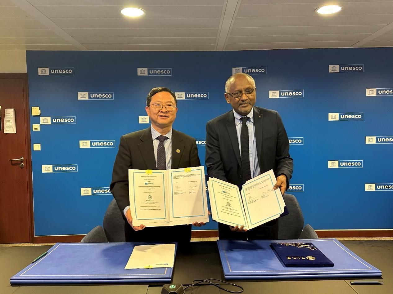 SYSU and UNESCO sign the Memorandum of Understanding on cooperation.