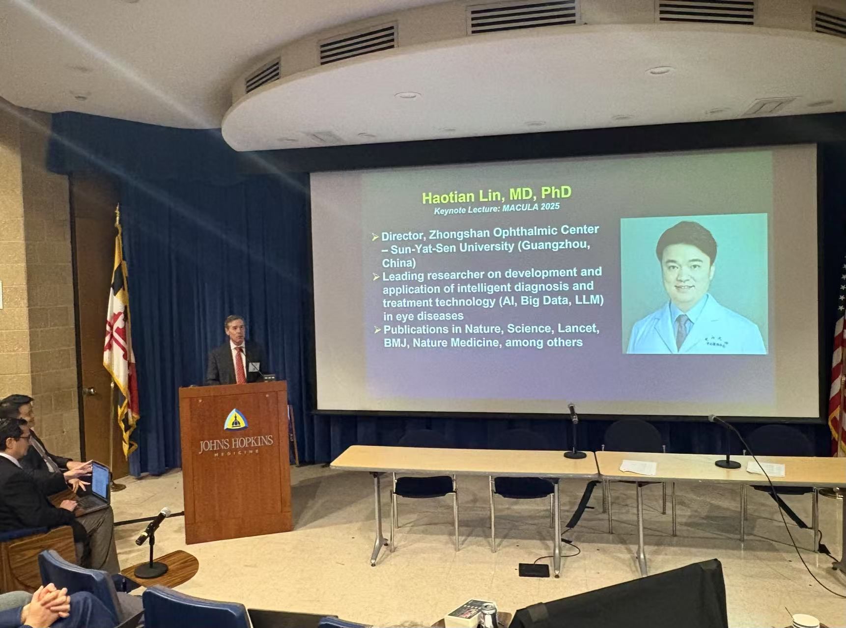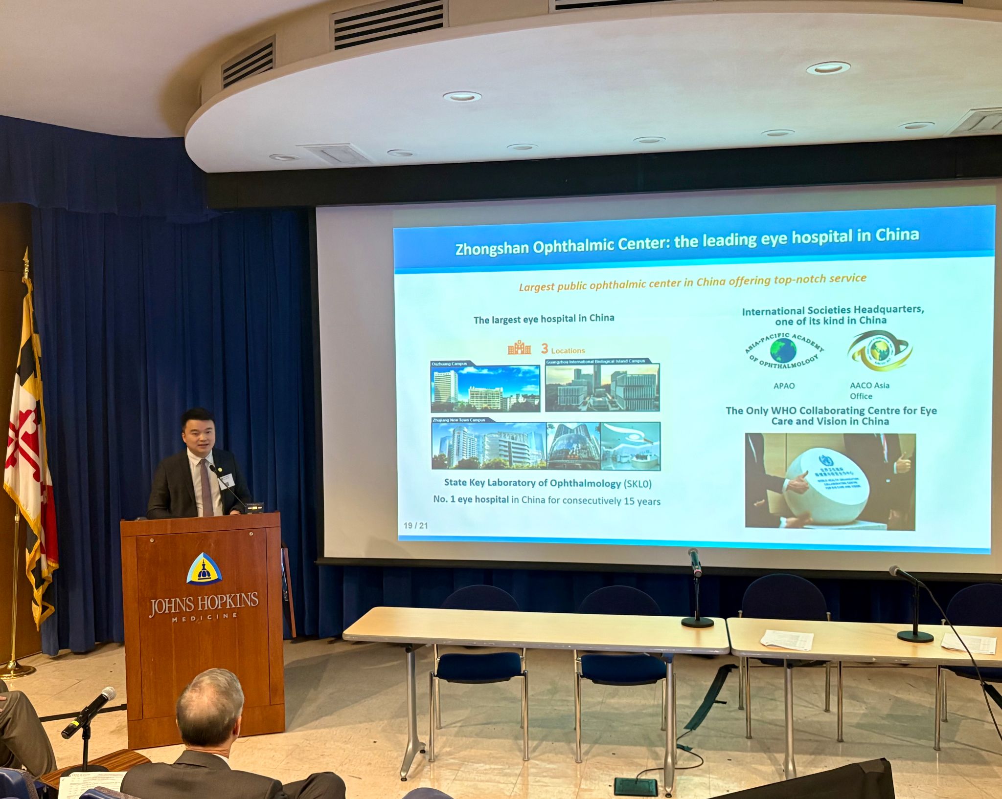 Prof. Haotian Lin highlights the century-spanning collaboration between Zhongshan Ophthalmic Center (ZOC) and Wilmer Eye Institute during the lecture.