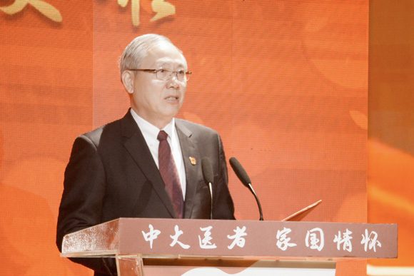 Secretary Chen Chunsheng delivered a speech at the meeting. On behalf of the university, he paid highest tribute to the medical professionals, faculty, staff and students for their contributions to the fight against COVID-19, and expressed sincere gratitude to the alumni and friends from all walks of life at home and abroad for their help in combating the epidemic.