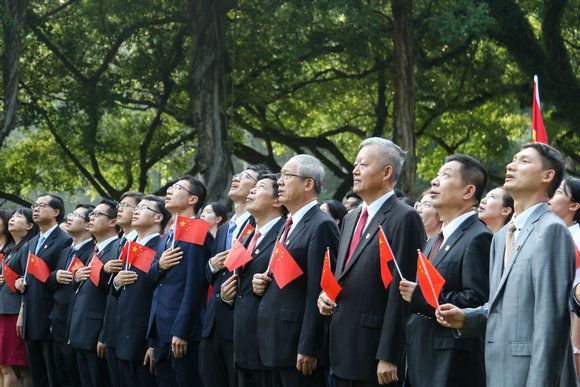 On the morning of October 1, 2019, Sun Yat-sen University (SYSU) held a national flag-raising ceremony at the central lawn of the Guangzhou South Campus. Faculty and students sang the national anthem to celebrate the 70th anniversary of the founding of the People’s Republic of China. Secretary Chen Chunsheng, President Luo Jun as well as faculty and student representatives attended the flag-raising ceremony. The event was presided over by Deputy Secretary Yu Minbin.