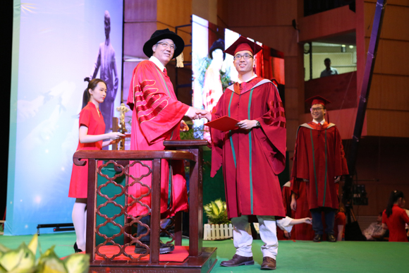 It’s the second time for Cai Tian, a Master’s student from the School of Sociology and Anthropology, to attend the graduation ceremony. When he shook hands with President Luo Jun, he thought of the university’s goal of training students who have both ability and moral integrity, able to cultivate charisma and eager to serve their country. He will keep the goal in mind and further his study in the UK.