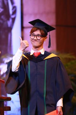 Su Weidi, an undergraduate student from the Department of History, was excited to see the scepter. After receiving his degree, he made a special gesture in front of the camera, saying “Four years of university life is an unforgettable experience. I want to make my graduation moment unique!”