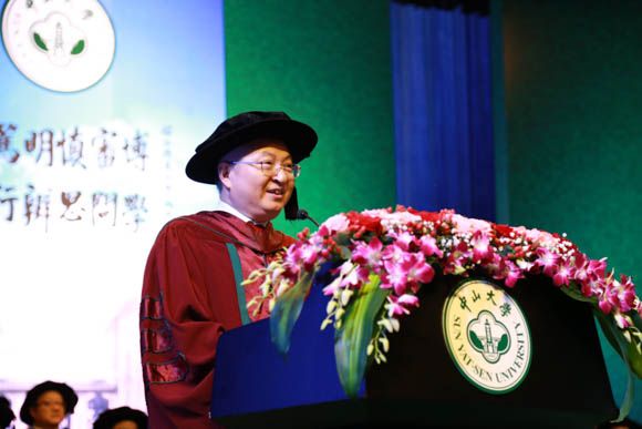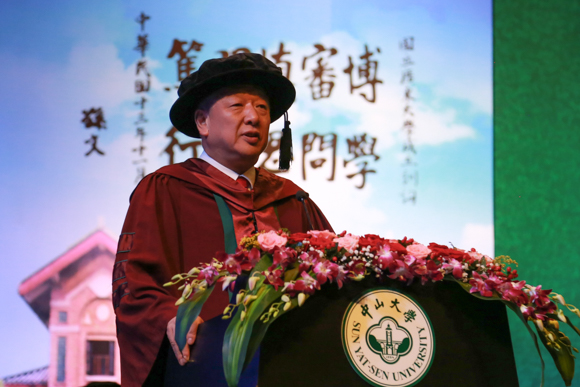 Professor Xia Shuzhang, father of MPA in China, has taught in SYSU for over 70 years. This is the twelfth time for him to hold the scepter at graduation ceremonies. He thinks the grand ceremony will remind the graduates to keep in mind the university motto and graduation precept written by Dr. Sun Yat-sen, and the university anthem will encourage the graduates to strive for self-improvement and forge ahead.