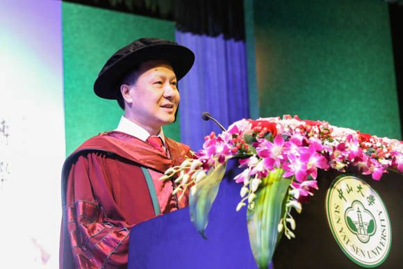 Professor Guan Yongyuan from Zhongshan School of Medicine expresses his hope that the graduates will carry forward the SYSU spirit and overcome various difficulties in their lives.