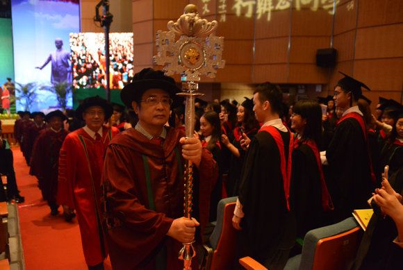 "Every year the university invites a senior member of the faculty to hold the scepter for each graduation ceremony. I am proud that I have been selected for several consecutive years,” said Professor Huang Tianji from the Department of Chinese.