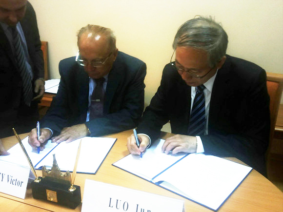 Rector Sadovnichy and President Luo Jun signing the cooperation agreement