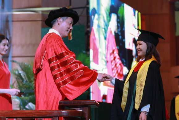 After listening to the graduation precept written by Dr. Sun Yat-sen, the founder of the University. The graduates responded firmly: "We shall follow your instruction!”