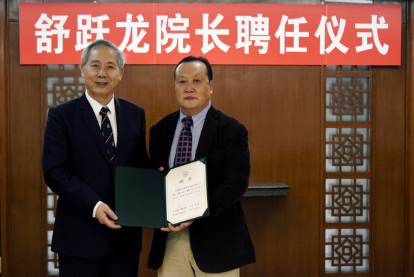 President Luo Jun presenting the letter of appointment to Professor Shu Yuelong