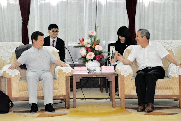 On May 24 to 25, 2016, a delegation from the University of Toulouse led by Prof. Jean-Pierre Vinel, President of the University Toulouse 3, visited Sun Yat-sen University (SYSU). Prof. Luo Jun, President of SYSU, led the reception for the Toulouse delegation, which also included Prof. Laurent Grosclaude, Vice President of the University of Toulouse, Prof. Fabrice Dumas, Vice President of the University of Toulouse 3 and eight other professors and directors from the various institutions comprising the University of Toulouse (UT). Joining President Luo on the SYSU side at the meeting in Zhongshan Building were Prof. Li Miao, Dean of the Institute of Astronomy and Space Science, as well as leaders from the School of Law, the School of Electronics and Information Technology, and the Office of International Cooperation and Exchange.