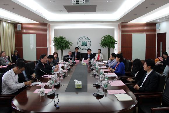 On November 13, the SYSU-JHU Collaboration Strategic Meeting was held on North Campus of Sun Yat-sen University. Xu Ningsheng, President of SYSU; Li Mengfeng, Vice President of SYSU; Peng Wei, Deputy Director of Health and Family Planning Commission of Guangdong Province; Zeng Lu, Director of International Exchange and Cooperation Division of Guangdong Science and Technology Department; Wu Qunyue, Director of Safety & Inspection Department of Guangdong Food and Drug Administration; Huang Yuwen, Deputy Director of Medical Science, Education and Research Division of Health and Family Planning Commission of Guangdong Province; Professor Daniel E. Ford, Vice Dean for Clinical Investigation of Johns Hopkins University School of Medicine (JHM); Professor Adrian Dobs and Associate Professor Zhiping Li, leaders of JHM workgroup; Professor Liang Dan, Director of Office of Medical Science of SYSU; Professor Hao Yuantao, Dean of School of Public Health of SYSU; Professor Zhang Li from Sun Yat-sen University Cancer Center; and directors of related offices, schools and affiliated hospitals of SYSU attended the meeting.