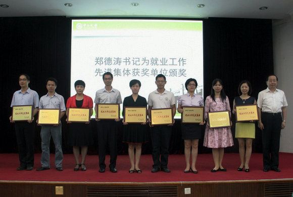 The conference summarized and analyzed the employment work for SYSU graduates in the past two years and commended the units and individuals that won the Outstanding Group Award and Outstanding Individual Award in the 2011-2013 student career counseling work. Secretary Zheng Detao, Executive Deputy Secretary and Vice President Chen Chunsheng presented the plaques and certificates to the winners.
