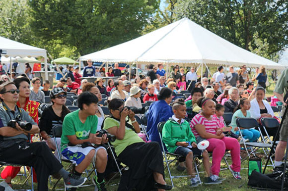 The opening ceremony was followed by a 6-hour Chinese singing and dance, traditional Chinese musical instrument performance and Taichi group practice. The whole performance was professional, graceful, full of enthusiasm and included a variety of shows. The local Americans enjoyed it very much, as manifested in the fully occupied audience seats throughout the afternoon and the fact that more and more people gathered in the park as time went by. At the same time, a lot of people also visited the booths which showcased a variety of programs including Confucius Institute Chinese teaching programs, Chinese shuttlecock, Chinese yoyo, traditional Chinese musical instrument performance, Chinese calligraphy, Chinese chess, Mahjong, and other demonstrations and interactions.