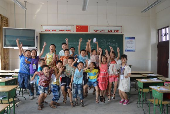 Volunteers in Santai are teaching the “interesting class in colorful summer holiday” to the left-behind children.