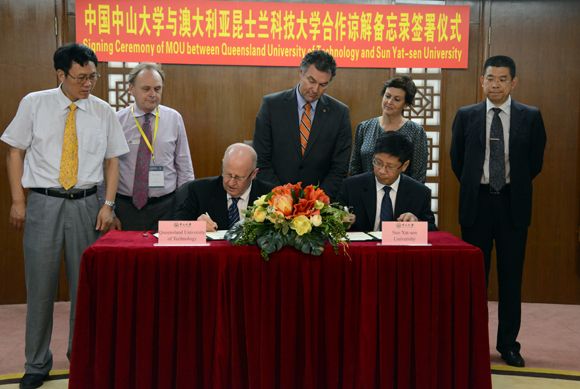 After the meeting, witnessed by Minister John-Paul Langbroek and representatives of both sides, Vice President Wei Minghai and Deputy Vice-Chancellor Scott Sheppard jointly signed a Memorandum of Understanding between SYSU and QUT.