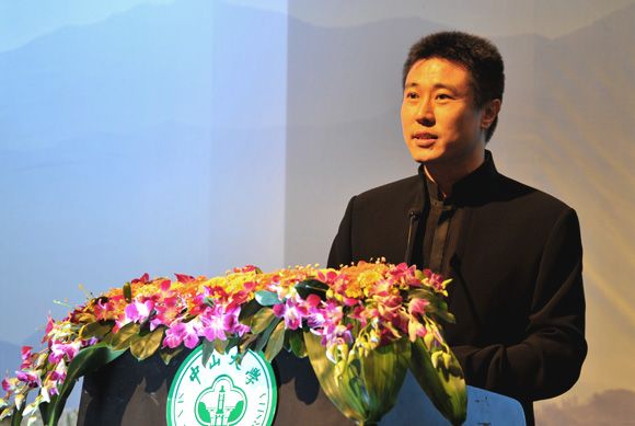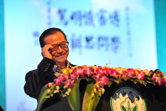Alumni representative Professor Chen Pingyuan from Peking University is delivering a speech.