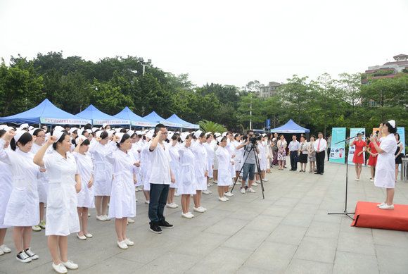 Following the lead of Vice Chairman of Guangdong Nursing Association Liang Jiading, future nurses solemnly pledged: I solemnly pledge myself in the presence of this assembly to pass my life in purity and to practice my profession faithfully. I shall abstain from whatever is deleterious and mischievous, and shall not take or knowingly administer any harmful drug. I shall do all in my power to maintain and elevate the standard of my profession and will hold in confidence all personal matters committed to my keeping and all family affairs coming to my knowledge in the practice of my calling. I shall be loyal to my work and devoted towards the welfare of those committed to my care.