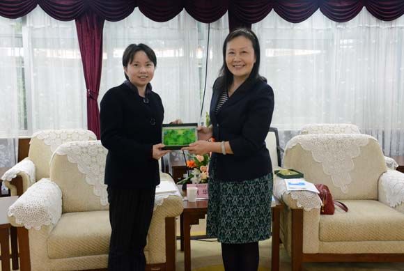 On the morning of April 8, a group led by Ms. Liu Hua, Deputy Director-General of UNA-China, visited SYSU. Li Ping, Deputy Secretary of SYSU Party Committee, met with them in the VIP room of Zhongshan Building. Chen Feng, former UN simultaneous interpreter, an alumnus and visiting professor of SYSU; Qi Xiaoping, Director of Student Affairs Office; Tang Rui, Deputy Secretary of SYSU Youth League; Cao Xin, Deputy Secretary of the Party committee of School of Foreign Languages; and Xu Yao, Deputy Director of Office of International Cooperation & Exchange, attended the meeting.