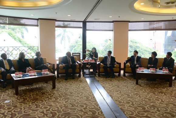 Before the beginning of the Opening Ceremony, Mr. Chen Yunxian, Deputy Governor of Guangdong Province, hosted a meeting with CMU delegation led by Dr. Jared Cohon, and leaders of SYSU led by Professor Xu Ningsheng. Mr. Chen extended his sincere congratulations to the cooperation between SYSU and CMU. He hoped that both universities would take the establishment of the two institutes as the turning point to deliver first-class graduate education, perform cutting-edge technological research and boost product development, contribute to the advancements in the key areas of information technology, solve practical engineering problems and make contributions to breakthroughs in key areas of information science and technology in China and the United States.