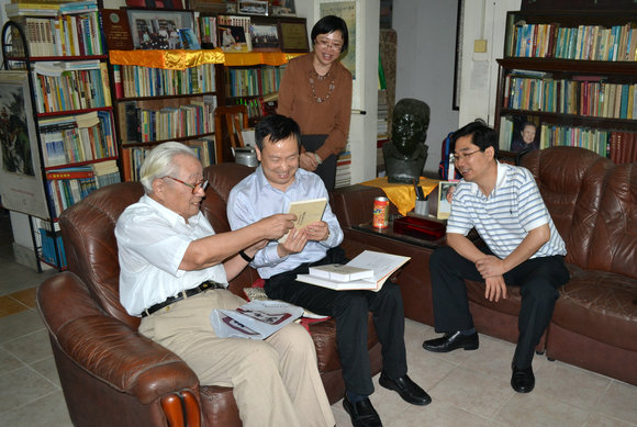 Professor Xia Shuzhang (first from left) presenting his new book to Director Sun Xueyu (second from left)