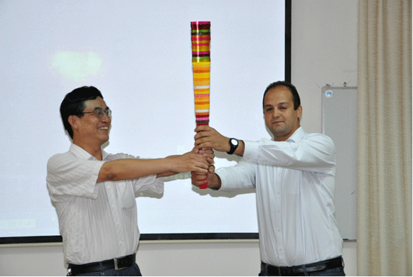At 8 p.m. on Aug. 12th, the Opening Ceremony of the 26th Summer Universiade started in the stadium of Shen Zhen Bay Sports Center. Five torchbearers, including Nasser and Liu Xiang(a star hurdler in China), represented the five continents (Africa, Asia etc.) to ignite the torch tower. After the Opening Ceremony, the five torchbearers were authorized by the Organizing Committee to keep the torches. And Nasser dicided after deliberation to present the torch to the School of Chinese As A Second Language, so as to express his appriciation for the School’s cultivation. Nasser hoped the torch would become the testimony of the forever friendship between Africa and China. At the meantime, he also wished a bright future for the international education in SYSU.