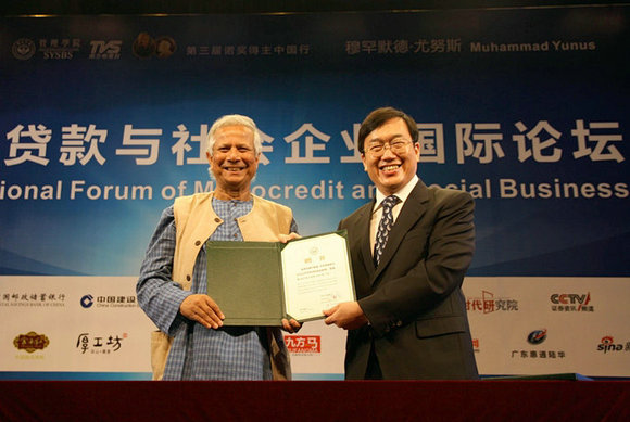 At the forum, Mr. Muhammad Yunus, Chen Zhiwu, tenured professor of Yale University, Huang Yasheng, MIT Professor, Ding Xueliang, Professor of Hong Kong University of Science and Technology and Senior Research Fellow of Carnegie Endowment for International Peace, Chen Jianmin, Professor of Sociology, Chinese University of Hong Kong, Shao Zhibao, Head of Guangdong Branch, Postal Savings Bank of China, and Latifee, Managing Director of Grameen Trust, Bangladesh, delivered a speech respectively.
