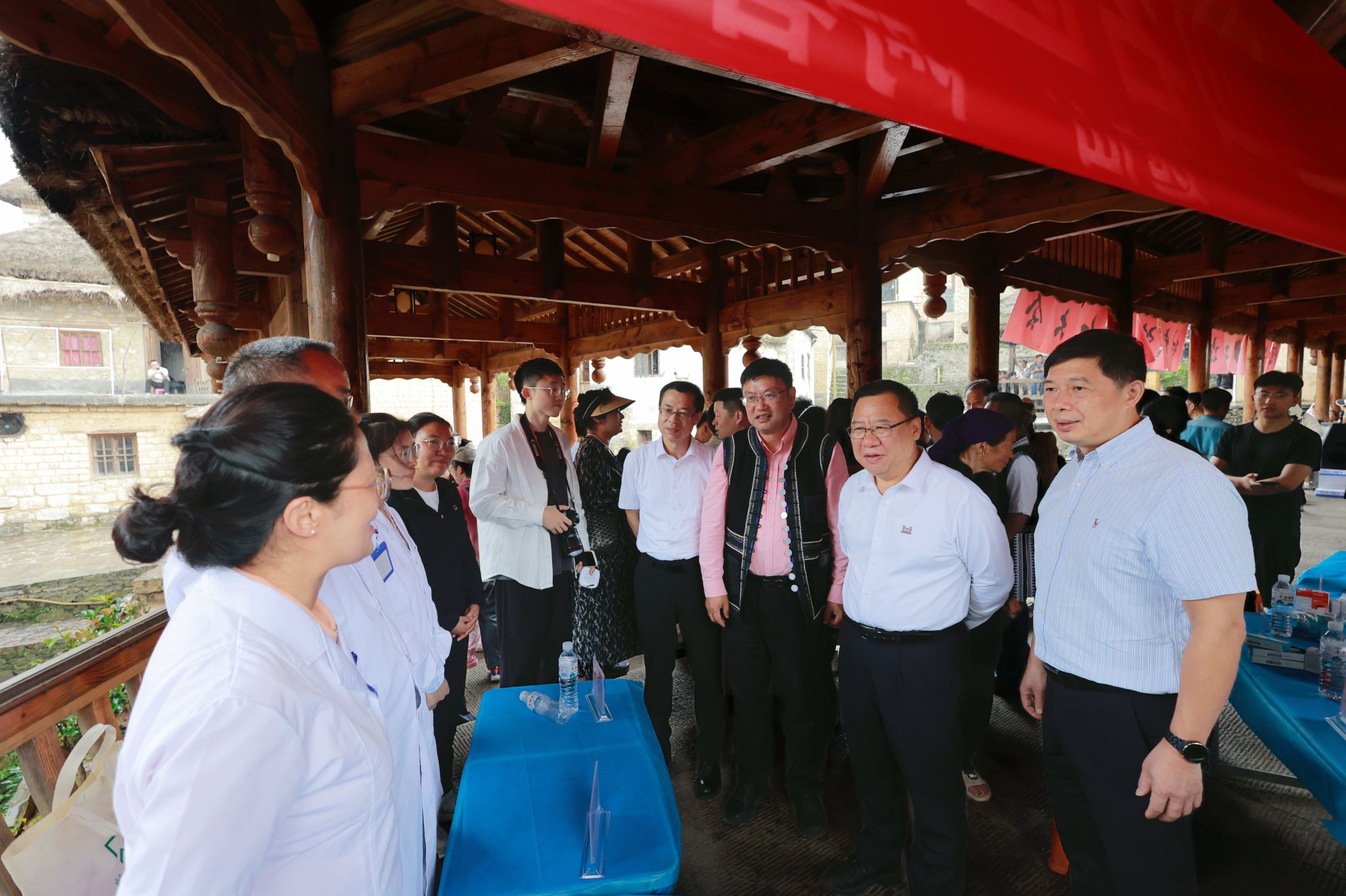 2018年开始,旅游学院保继刚教授团队发挥学科优势,在红河州元阳县阿者科村发起“阿者科计划”,利用当地资源推动遗产保护、旅游发展和村民创收,创造了全球旅游减贫的中国样本。8日下午,朱孔军来到阿者科村参加第12次乡村旅游分红大会,为村民现场发放现金分红。据了解,本次65户分红共计67.2万元,最高分红1.2万元,户均分红超过1万元,农户全年累计分红首次突破2万元。分红大会现场,孙逸仙纪念医院也派出医疗队为村民和游客开展义诊活动,朱孔军亲切慰问了义诊医疗队队员。