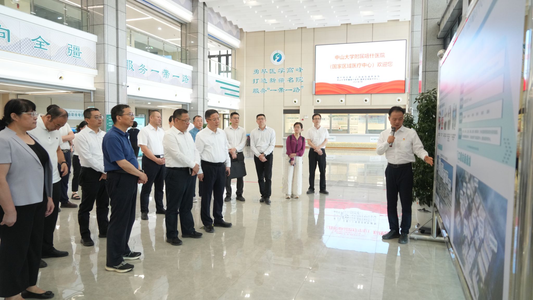 喀地一院院长肖非介绍医疗援疆相关情况(喀地一院 冯家乐摄)