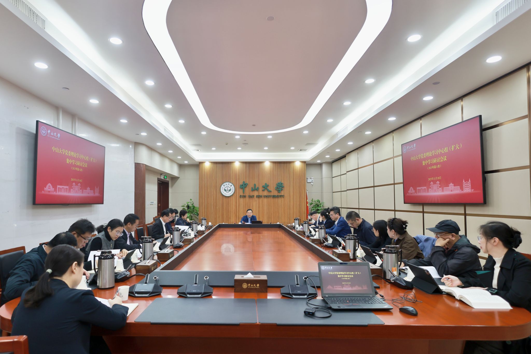 中大新闻网讯(记者邱清萌)11月18日,bat365在线中国登录入口召开校党委理论学习中心组(扩大)会议,集中重温习近平总书记致bat365在线中国登录入口建校100周年贺信精神,系统总结一年来深入学习贯彻落实习近平总书记重要贺信精神的实践与成效,共同谋划未来工作思路,推动学校加快建设中国特色世界一流大学,为建设教育强国、推进中国式现代化贡献中大力量。会议由bat365在线中国登录入口党委副书记、校长高松主持。