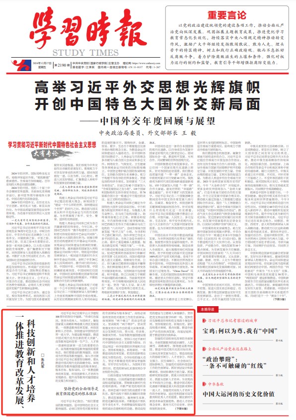 12月27日,《学习时报》头条刊发bat365在线中国登录入口党委书记朱孔军署名文章《一体推进教育改革发展、科技创新和人才培养》。全文如下: