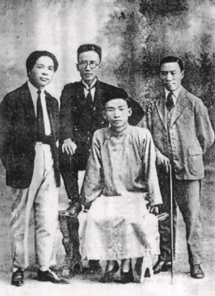 1926年,接任外国文学系系主任一职的郁达夫与郭沫若等教授在国立广东大学(从左至右为王独清、郭沫若、郁达夫、成仿吾)