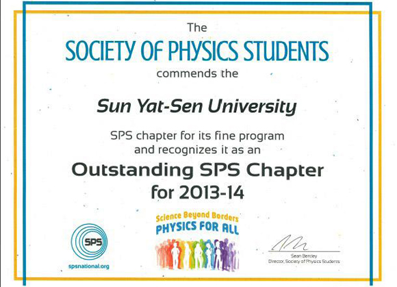 Sun Yat-sen University SPS Chapter recognized as Outstanding SPS Chapter for 2013-2014