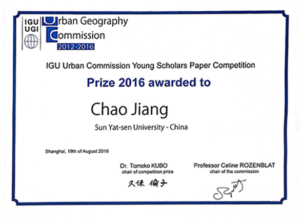 PhD Candidate Chao Jiang Wins IGU Urban Geography Commission Young Scholars Paper Competition Prize 2016