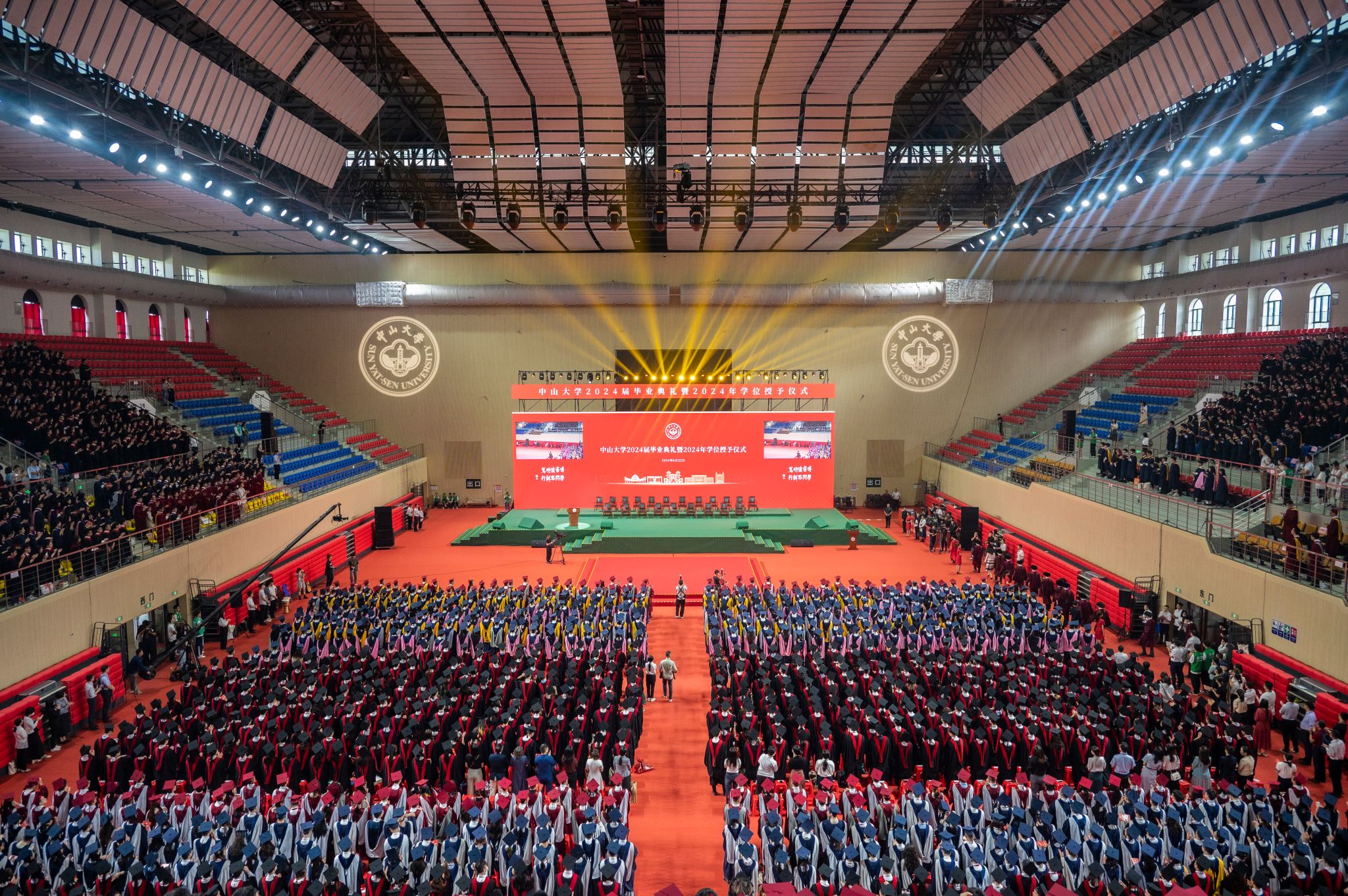 Sun Yat-sen University (SYSU) held a graduation ceremony for the class of 2024 on June 22, with over 16,000 graduates receiving bachelor's, master's and doctoral degrees. The ceremony was also streamed live via multiple social media platforms.Graduates are gathering in the main venue of gymnasium on Guangzhou South Campus on June 22.Xiao Haipeng, executive vice president of SYSU, presided over ...
