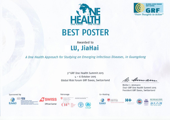 Prof. Jiahai Lu Won the Best Poster Prize in the 3rd GRF One Health Summit 2015