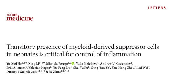 New study from Nature Medicine reveals a critical role of MDSCs in controlling inflammation in early life