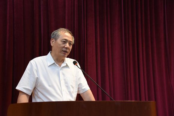 Luo Jun delivering a speech at the routine meeting of the hospital