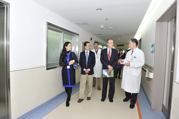 Dr. Roy Ziegelstein and Dr. Zhiping Li also visited The Third Affiliated Hospital to meet with some faculty and 8-year medical students. The meeting provided the guests with more details about SYSU’s medical education strategies implemented in the school as well as its affiliated hospitals. In addition, as an internationally recognized cardiologist, Dr. Ziegelstein paid a visit to the Cardiovascular Department of The Third Affiliated Hospital. Prof. Qian Xiaoxian, Director of Cardiovascular Department, led the tour of the department, including the ward, CCU and ultrasonic intervention room. During the tour, both sides shared their experience in department management as well as patient care and treatment. Dr. Roy Ziegelstein also joined a clinical case study discussion with the doctors and residents.