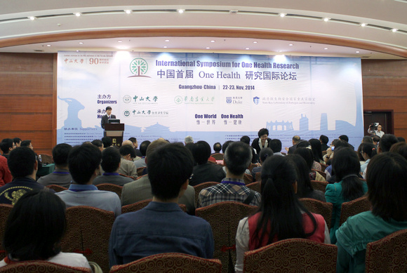 China’s first International Symposium for One Health Research (ISOHR) was held in Guangzhou on November 22nd-23rd. The symposium was jointly organized by Sun Yat-sen University, South China Agricultural University, Duke University (USA) and State Key Laboratory of Pathogen and Biosecurity, and hosted by School of Public Health, Sun Yat-sen University. Attendees were the experts and researchers from 10 provinces or municipalities, belonging to governmental institutes such as Centers for Disease Control and Prevention and Animal Health Inspection Institute, universities such as veterinary colleges and medical schools, and also health or agricultural related research institutions. This symposium was co-chaired by Dr. Yuantao Hao, Dean of School of Public Health, and Dr. Wenhua Ling, Director of Office of International Cooperation and Exchange.