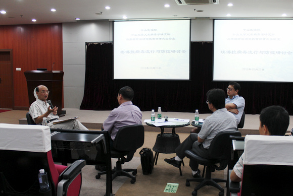 Dr Zhu Xun from the Key Laboratory of Tropical Diseases Control, Ministry of Education of China, Dr Pan Ting from the Institute of Human Virology of Sun Yat-sen University, Dr Li Chufang from the State Key Laboratory for Respiratory Diseases, and Dr Pu Jieying from the Department of Immunology at Zhongshan School of Medicine, spoke on the etiology, current drug research, antibody therapy, and immunology against the Ebola virus respectively.