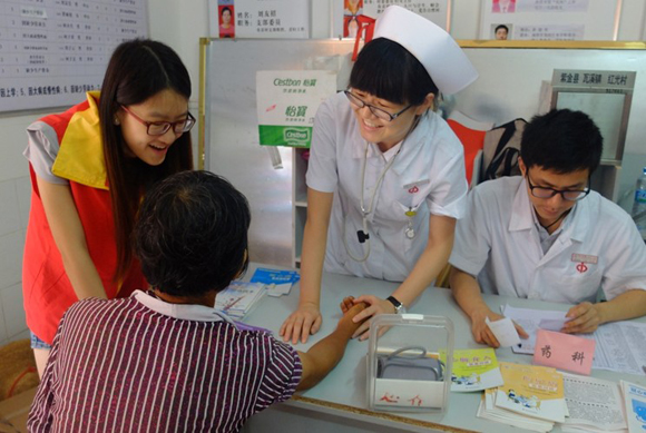 Located in a hinterland of Zijin County, Heyuan City, Hongguang Village is shut in by hills. Due to traffic inconvenience, it is hard for the villagers to see a doctor in the county. The activity of the volunteer medical service team of The First Affiliated Hospital helped relieve the problem.