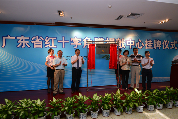 (in the order from left to right) jointly unveiled the Red Cross Corneal Donation Society of Guangdong Province.