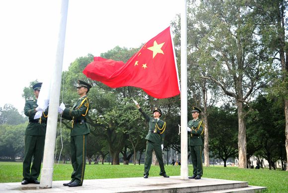 First, the flag-raising ceremony was held.