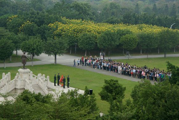 Sun Yat-sen University has decided that starting from this year, the ceremonies of presenting flowers to the bronze statues of Dr. Sun Yat-sen are held on all campuses on November 12 every year to pay tribute to Dr. Sun Yat-sen who founded the University.