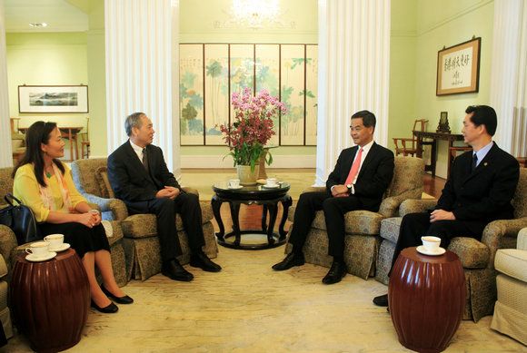 Prof. Luo Jun visiting Mr. C Y Leung, the Chief Executive of HKSAR